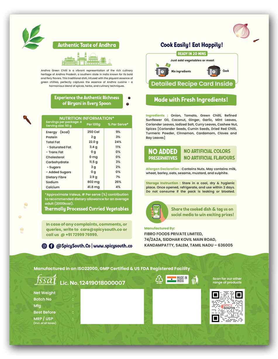 Andhra Green Chilli is best served with Ghee Rice, Steamed Rice, Roti, Naan, Paratha and Biryani